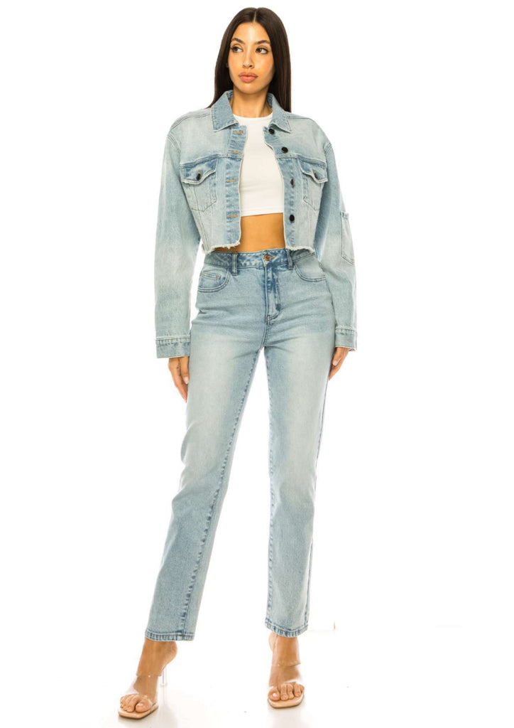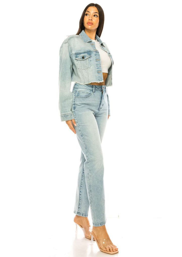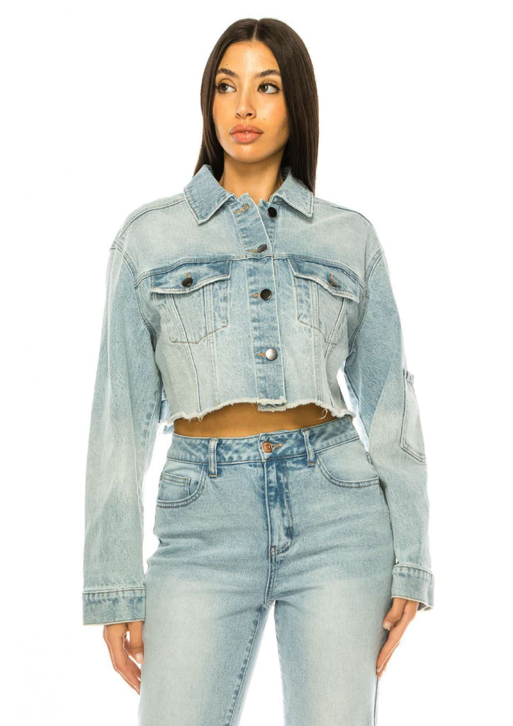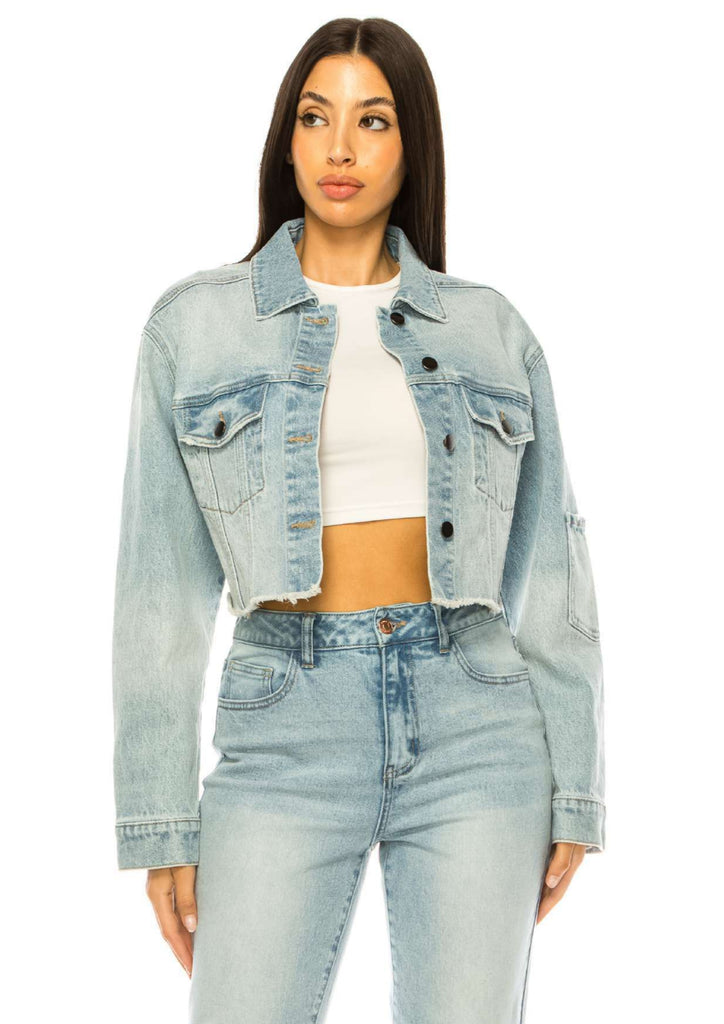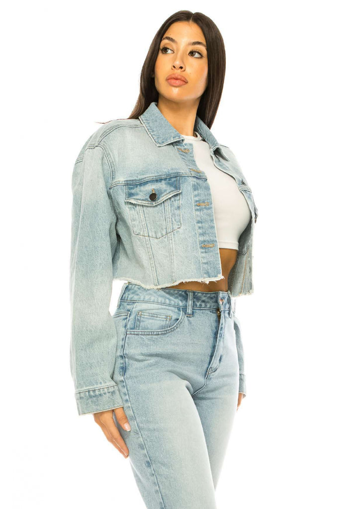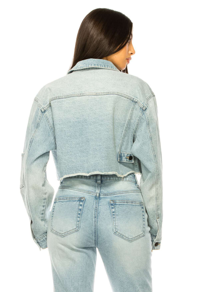 CROPPED RAW EDGE LIGHT COLOR DENIM JACKET